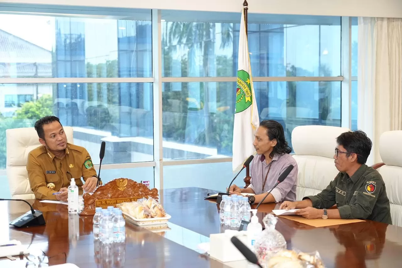 Samarinda - Gubernur Kaltim Rudy Mas`ud menerima kunjungan Bawaslu Kaltim, Senin, 14…
